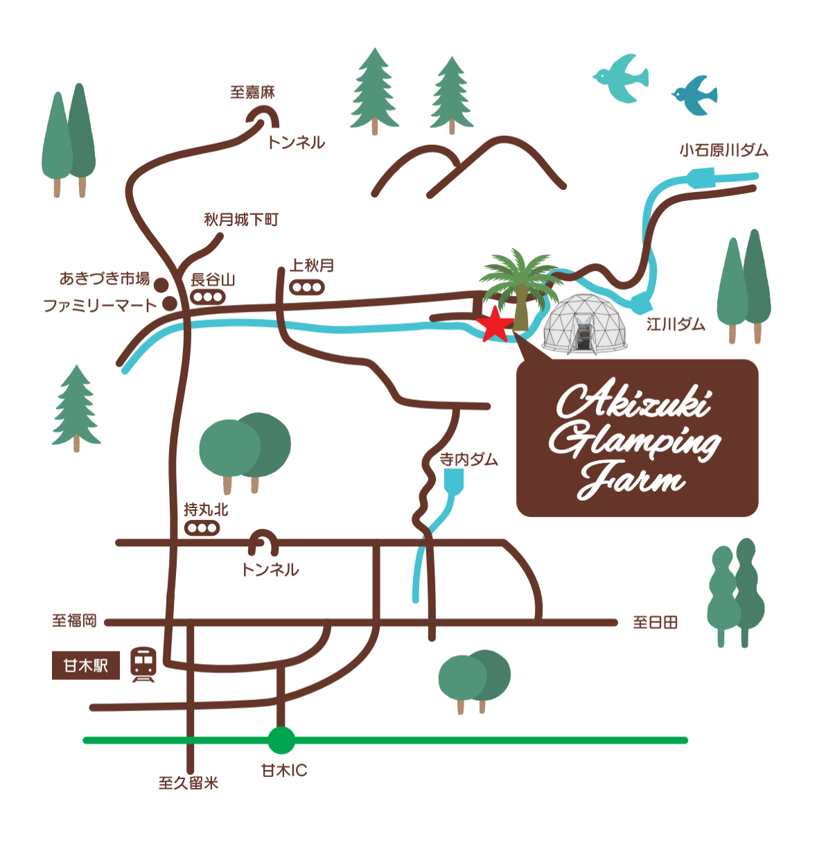 ※秋月グランピングファームは、甘木漁業協同組合の特別賛助会員ですので、施設利用者に限り施設前河川での遊漁料は不要です。ただし、当施設が指定するエリア外での漁業や遊漁は「甘木漁業協同組合内共第2号第五種共同漁業権遊漁規則」に基づき遊漁券を購入していただきます。